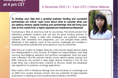 Miao He is an investor at Hadean Ventures, a life sciences-based venture capital firm, headquartered in Oslo, Norway.