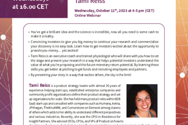 Tami Reiss is an executive coach and trained physiologist who will share with you how to set the stage and present your research in a way that helps potential investors understand the value of what you’re proposing and the future monetary return potential. By learning these skills you get better at pitching to get funds and recruiting employees and partners.