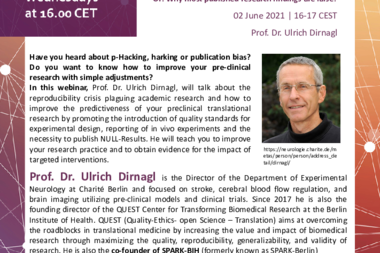 In this webinar, Prof. Dr. Ulrich Dirnagl will teach you to improve your research practice and to obtain evidence for the impact of targeted interventions.