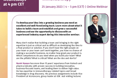 INVITATION | SPARK Europe Webinar Series | Team building and how to establish a company | Namir Hassan, CEO at Zelluna Immunotherapy